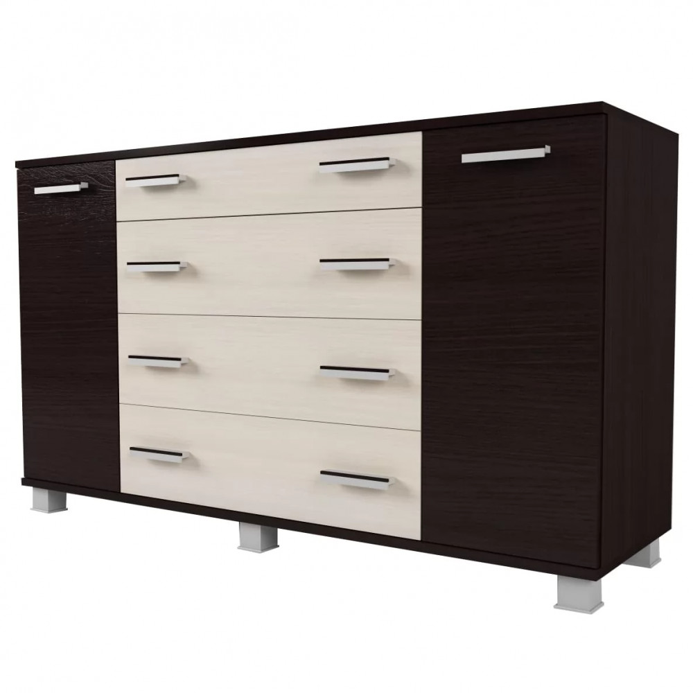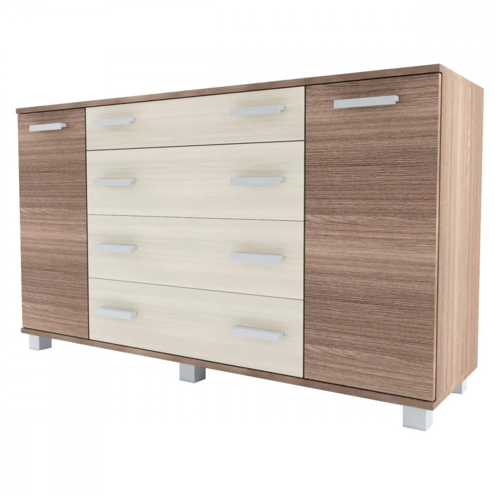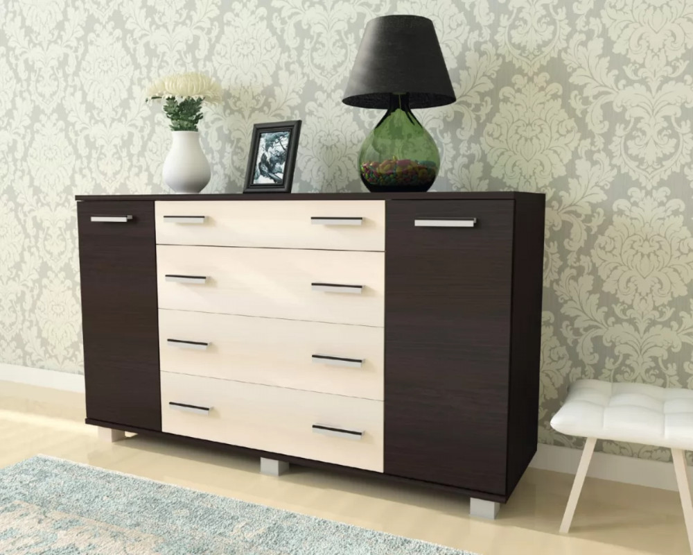 Комод с четырьмя выдвижными ящиками и боковыми отделениями с полками.
