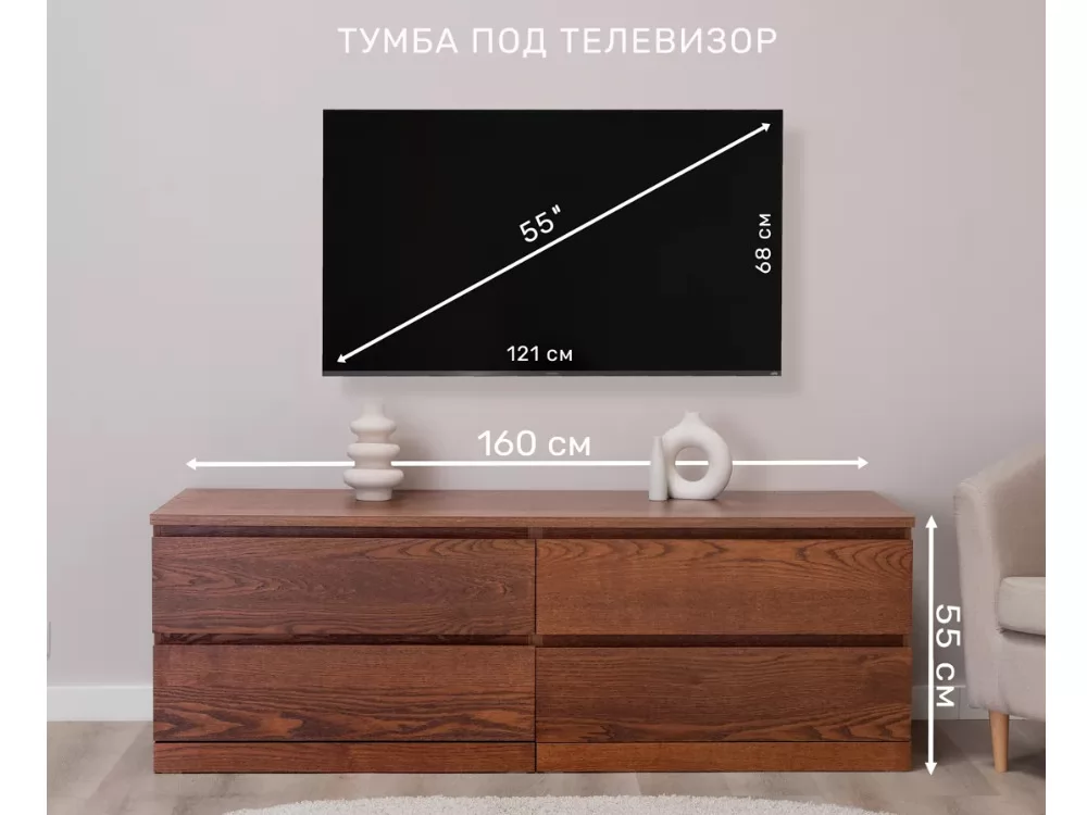Комод 160x55x48 Варма Прайм 4Д шпон ясень коричневый
