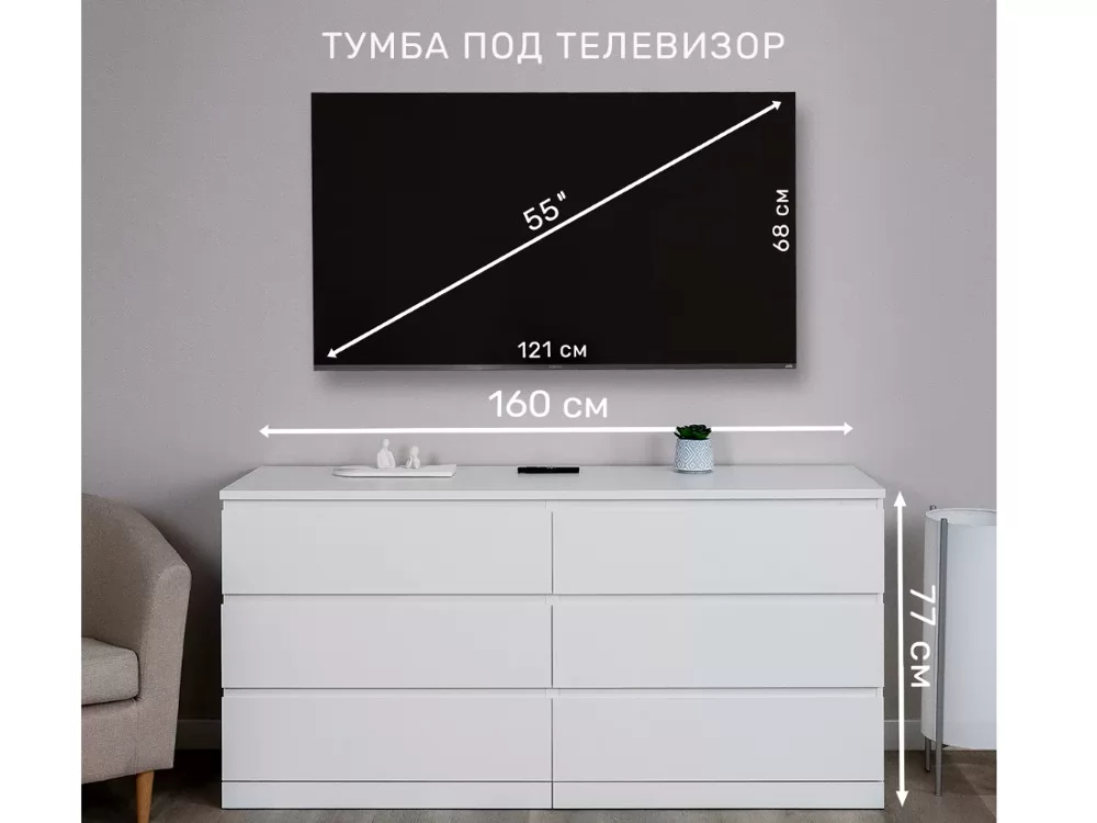 Комод 160x77x48 Варма Прайм 6Д белый