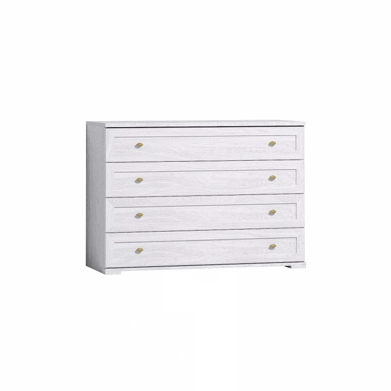 Светлый вместительный комод в спальню с четырьмя ящиками рачительная хозяйка всегда найдет чем наполнить. Ящики глубиной 14 см выдерживают нагрузку до 20 кг каждый.