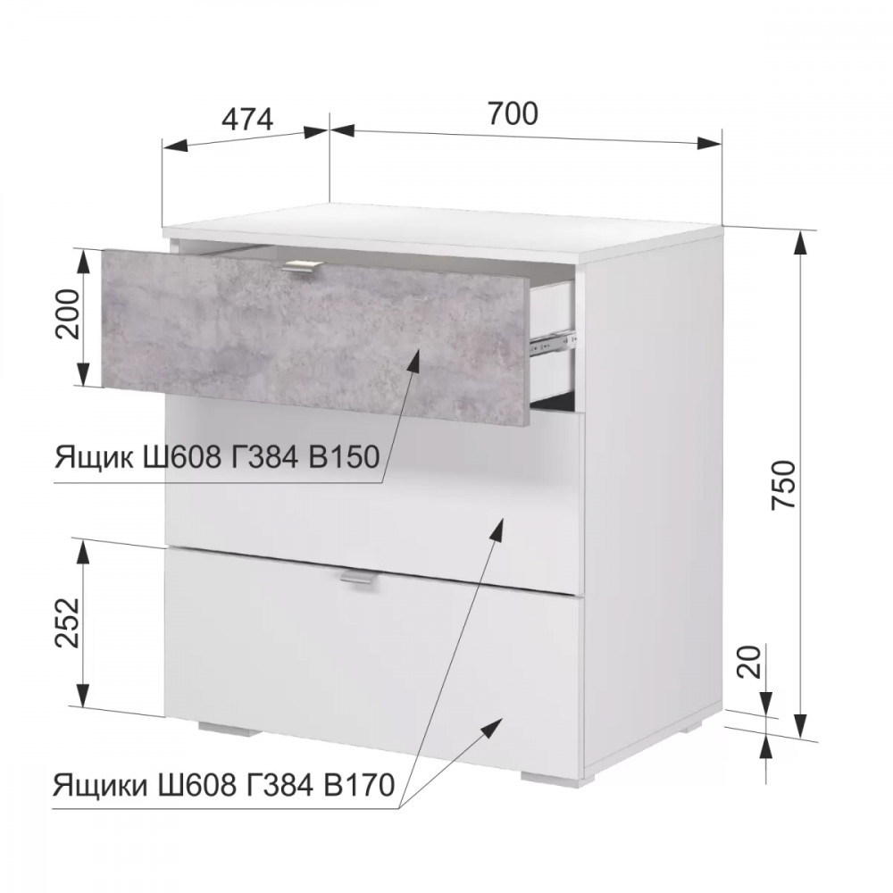 Размер: (Ш*В*Г) 700*750*474 мм.