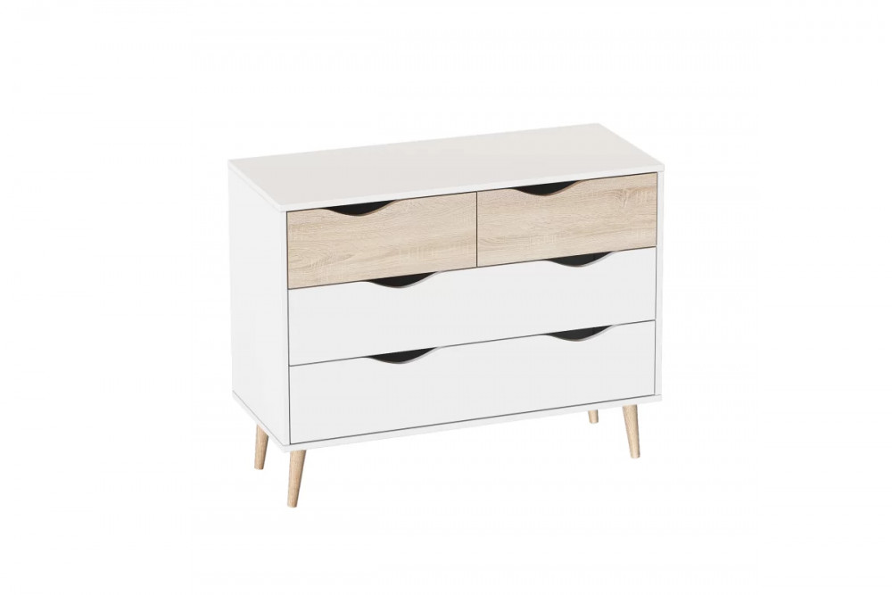 Серия «Соната» отличается простотой и натуральностью, выполнена в естественных тонах. В дизайне отчетливо улавливаются отсылки к скандинавской эстетике: чистые линии корпуса, использование белого цвета в отделке фасадов, расставленные в стороны высокие стильные опоры, выполненные из массива березы.