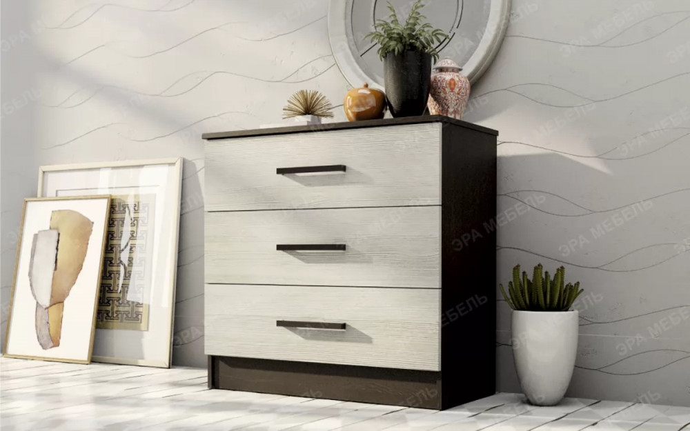 Комод не займёт много места и отлично дополнит любой стиль интерьера. Товар представлен в широкой цветовой палитре: Венге + сосна Лоредо/ дуб Вотан + белый глянец/ ясень Шимо тёмный + ясень Шимо светлый.