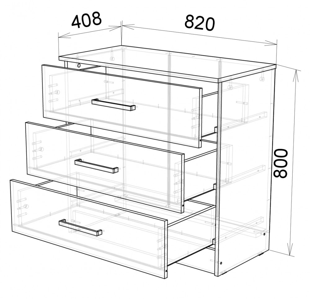 Комод "АДЕЛЬ" – элегантное и стильное решение для вашей спальни. Конструкция выполнена из ЛДСП, имеет следующие габариты: высота – 800 мм, глубина – 405 мм, ширина – 820 мм. Товар имеет три вместительных выдвижных ящика, предназначенных для хранения вещей и других предметов. Поверхность мебели также можно использовать для расставления декора.