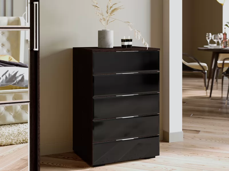 Спальный гарнитур «Порто» №4 Яблоня Беллуно/Графит/Стекло сатин черное