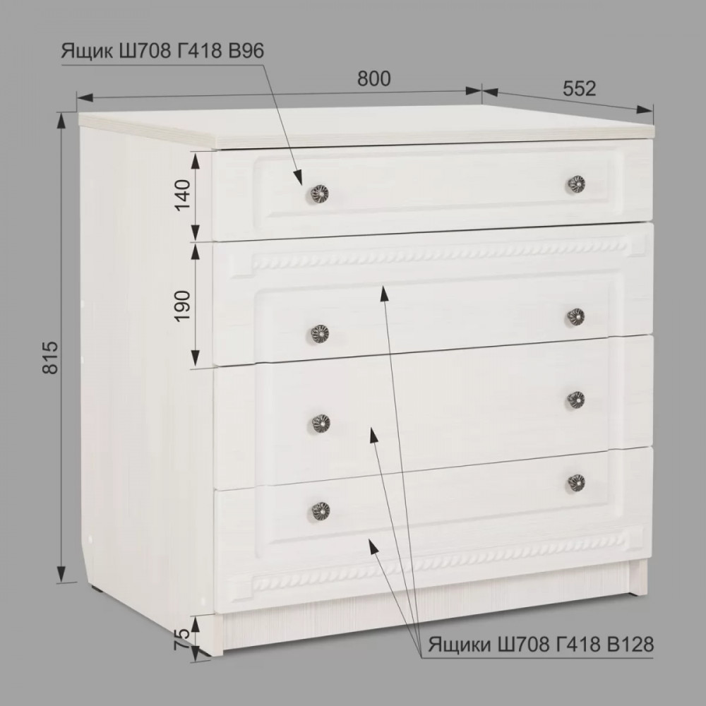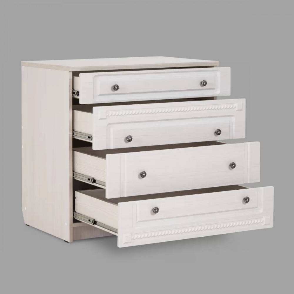 Комод №9 из коллекции мебели для спальни "Азалия" оборудован 4 вместительными ящиками.