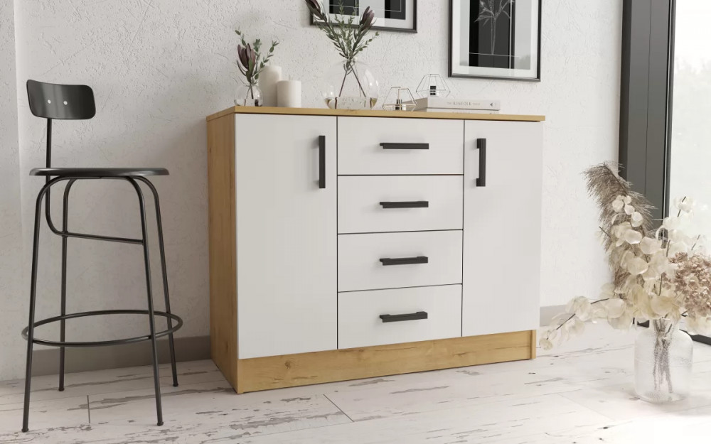 Комфортабельный и практичный шкаф имеет два варианта исполнения: ясень Шимо тёмный + ясень Шимо светлый/ Венге + сосна Лоредо.