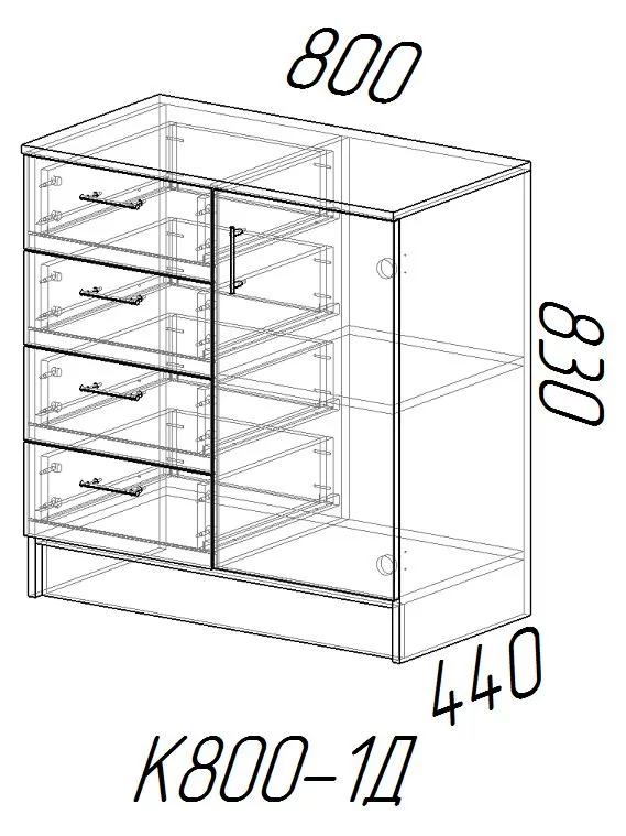 Комод К800-1Д – это то, что нужно для оформления вашего пространства. Такой вариант мебели отличается своим сдержанным дизайном, который особо актуален во всех современных интерьерах.