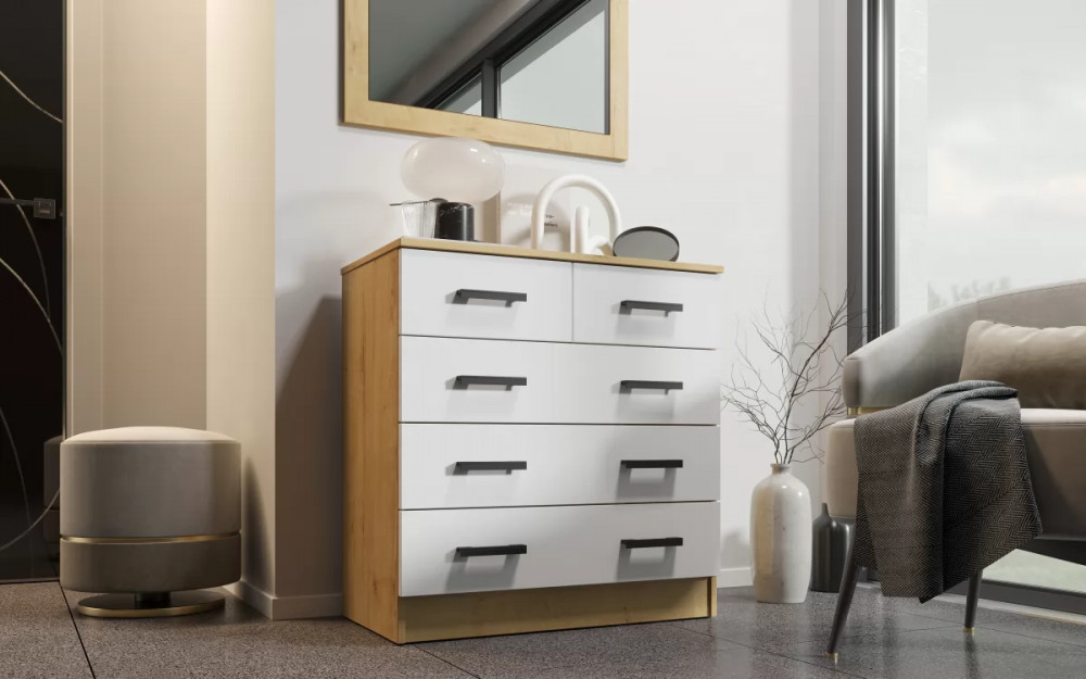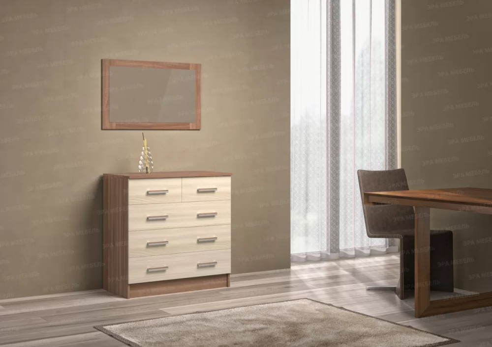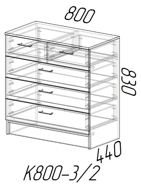 Комод К800-3/2 – практичный вариант для тех, кто ценит своё пространство и обставляет его со вкусом. Конструкция имеет надёжную и прочную поверхность, так как изготовлена из ЛДСП. Комод обладает следующими габаритами: высота – 830 мм, глубина – 440 мм, ширина – 800 мм. Мебель имеет функциональную и удобную систему хранения: три больших выдвижных отдела и два маленьких. Каждый из них найдёт своё применение в вашей спальне.