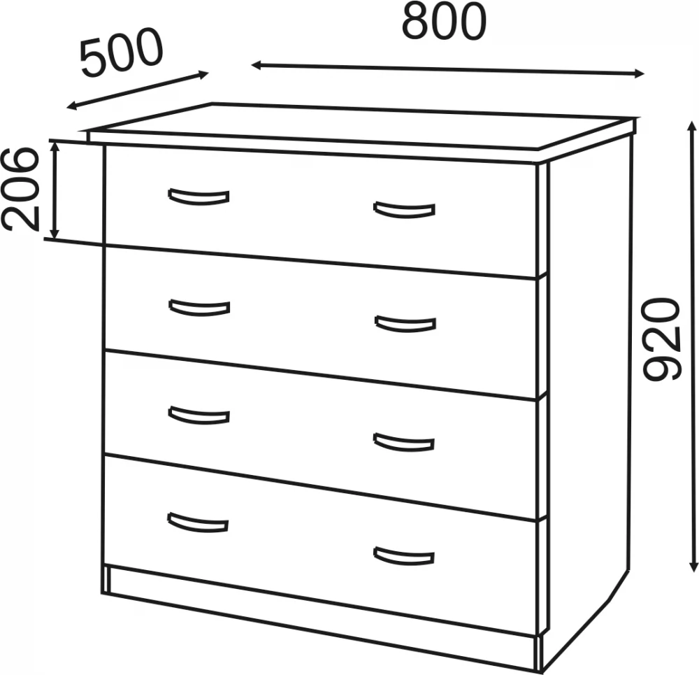 2. Комод имеет 4 ящика , выдвигающихся на роликовых направляющих