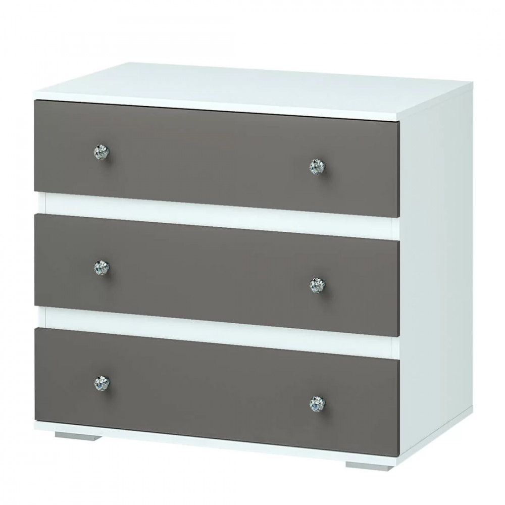 -фасады трех выдвижных ящиков в цвете смоки айс гармонично сочетаются с белым цветом корпуса,
