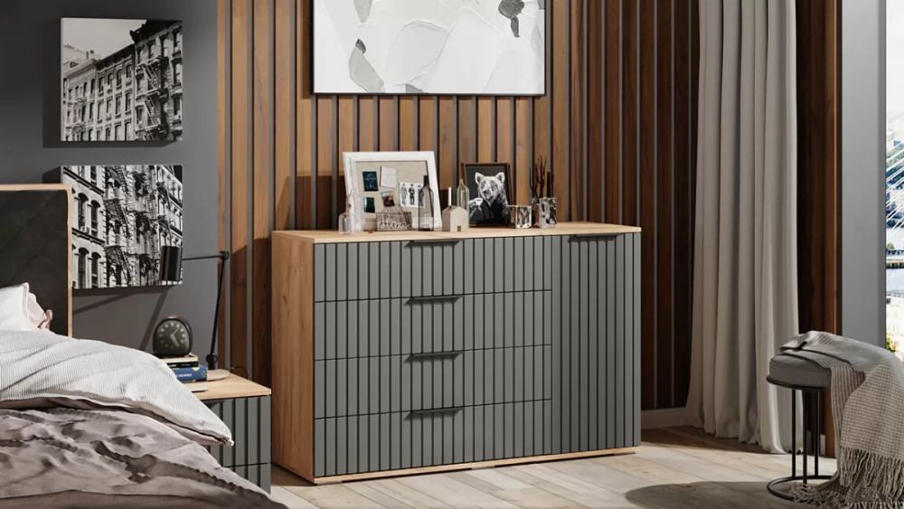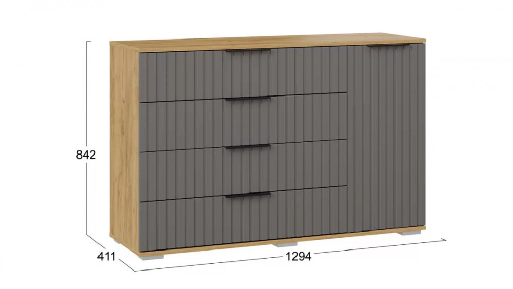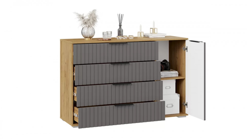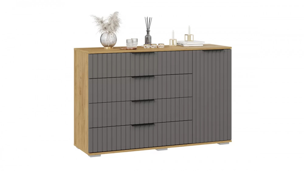 Комод комбинированный «Хилтон» Дуб крафт золотой, графит матовый
