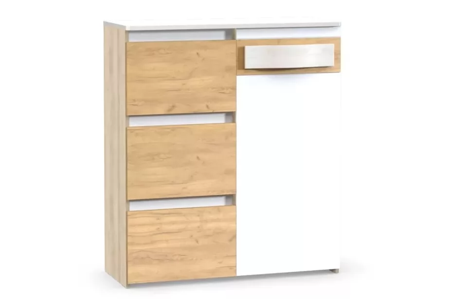 Комод "Лакки" прекрасно впишется в интерьер спальни. Система хранения состоит из трех выдвижных ящиков и закрытого отделения с двумя полками. В основу этой концепции положена одна из популярнейших тенденций дизайна интерьера – стремление сделать ваш дом еще более просторным, светлым и уютным. Обилие белого цвета, контрастно подчеркнутого фактурным деревом, вдохнет в пространство вашего дома новую жизнь