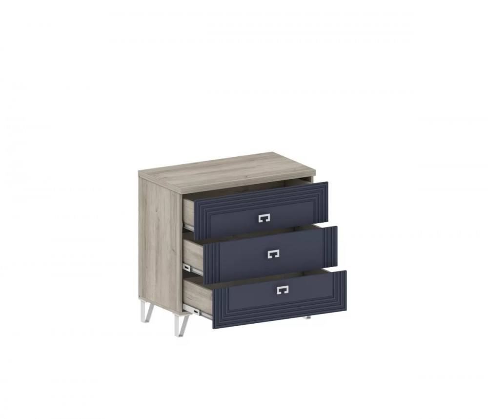 В комодах выдвижные ящики укомплектованы направляющими полного выдвижения. Дно ящика и задняя стенка выполнены из ХДФ, которое вставляется в паз. Новая модная опора.