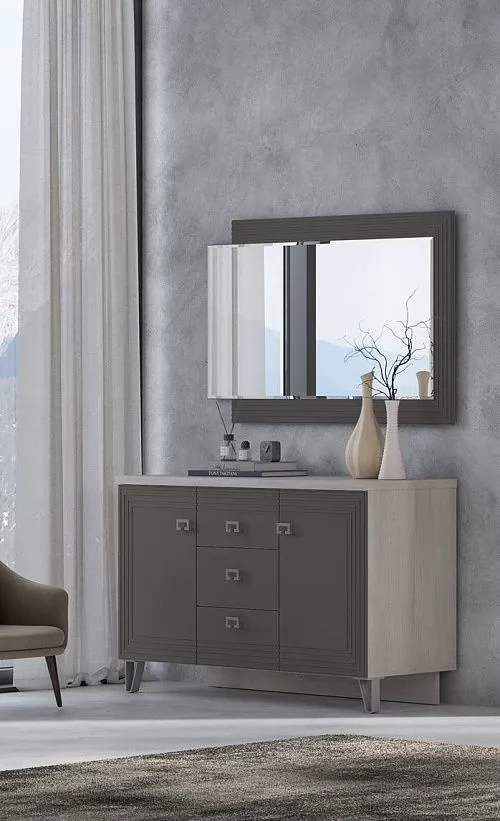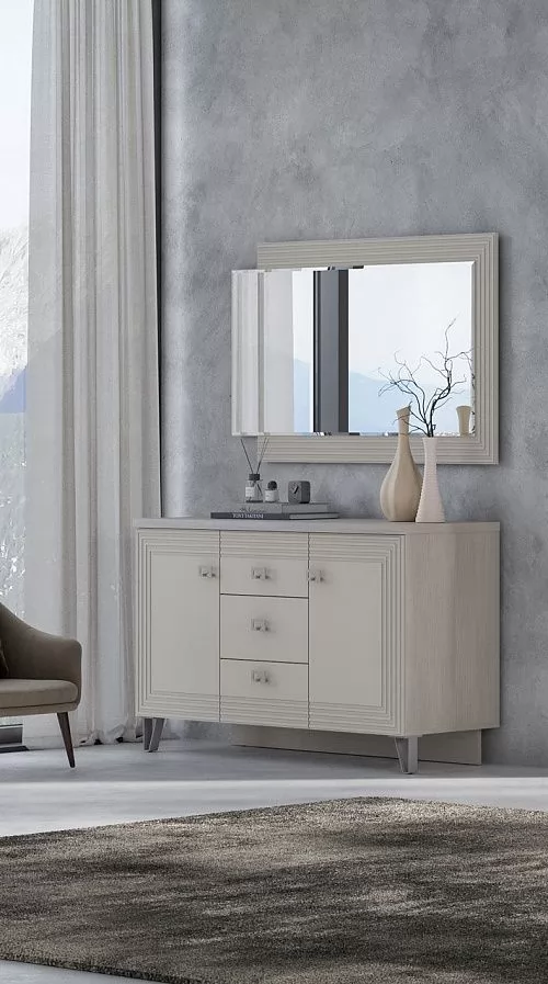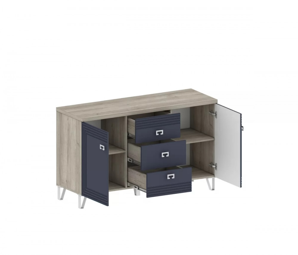 В комодах выдвижные ящики укомплектованы направляющими полного выдвижения. Дно ящика и задняя стенка выполнены из ХДФ, которое вставляется в паз. Новая модная опора.