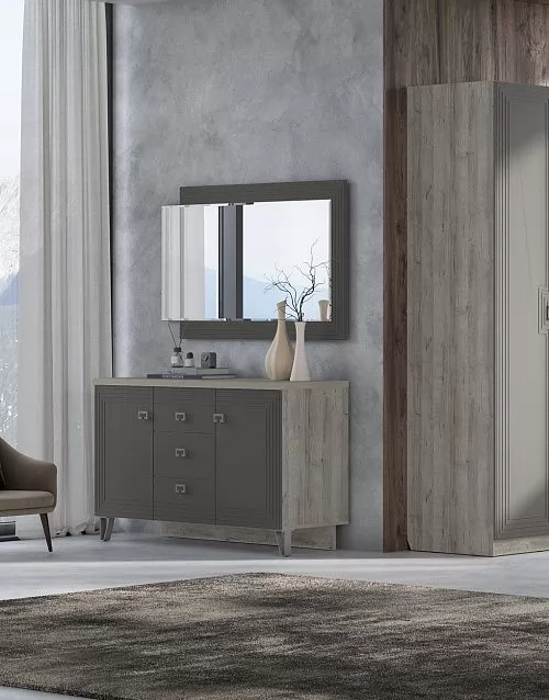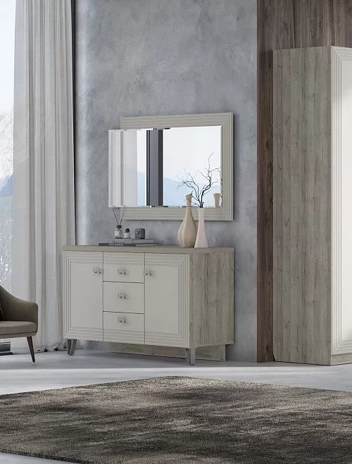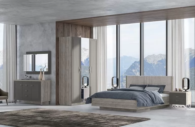 Спальный гарнитур с 3-х створчатым шкафом и комодом Анталия Сонома-Белый софт