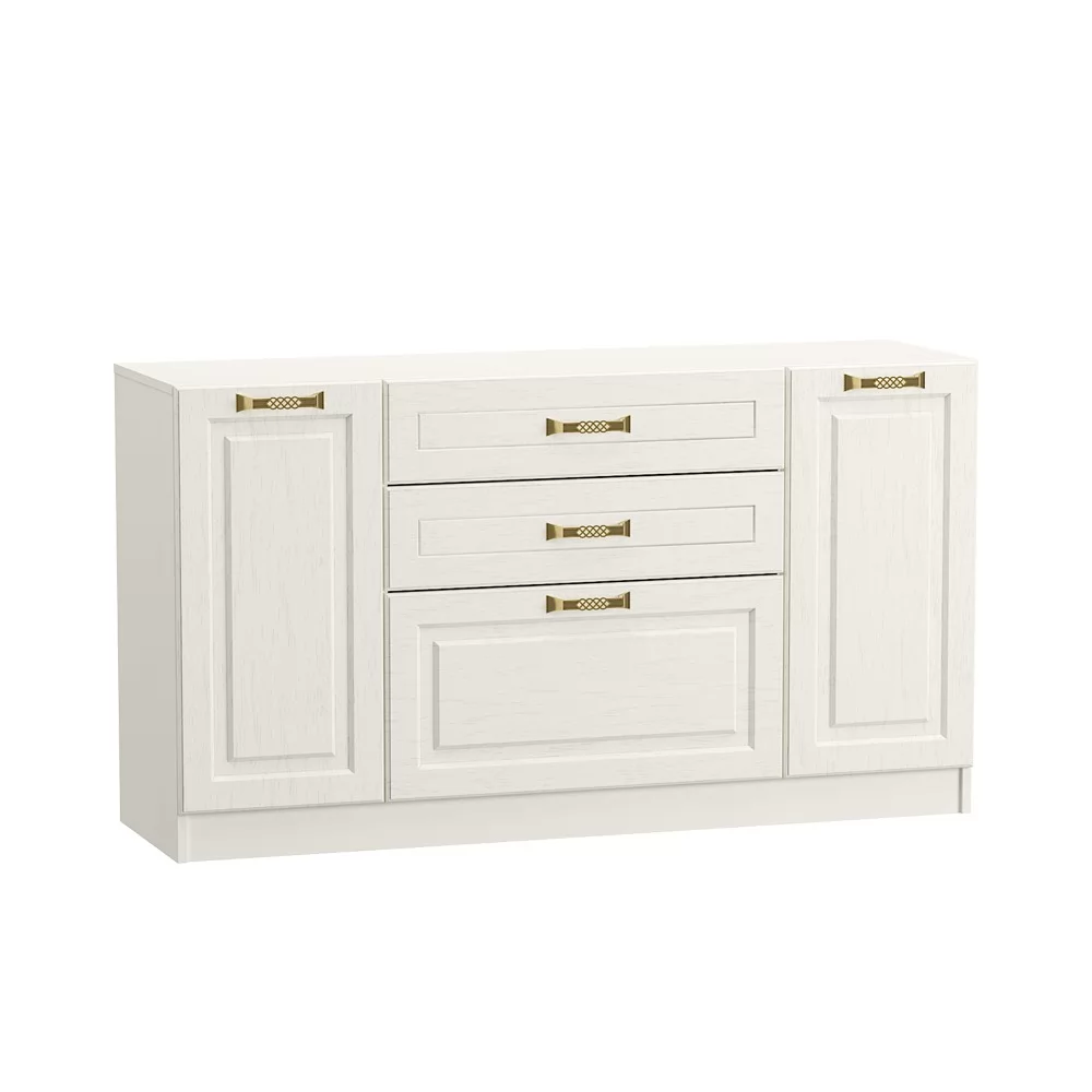 Комод "Ливерпуль" - уникальное сочетание европейского комфорта и восточного колорита, исполненное в современном колониальном стиле. Система хранения состоит из трех выдвижных ящиков разного размера и двух секций с полками за распашными дверцами. Столешница комода может быть использована в качестве журнального столика или тумбы под ТВ.