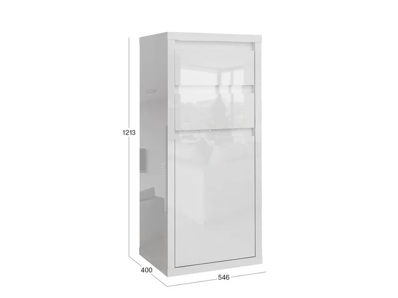 Фасады изготовлены из 16 мм ламинированной древесностружечной плиты производства компании «ЭГГЕР» - цвет «Белый». На лицевые поверхности корпуса нанесено высокоглянцевое лаковое покрытие. По периметру фасады закромлены кромкой ABS.