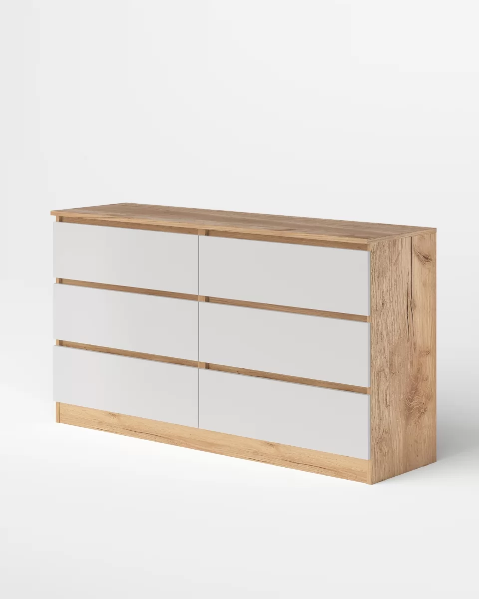 Дуб вотан в сочетании с белым цветом - классический дуэт, широко использующийся для оформления современных интерьеров. Универсальный нейтральный белый цвет в этом случае создаёт фон для яркого дерева, благодаря чему данное сочетания легко впишется как в спокойный светлый интерьер, так и в контрастное насыщенное пространство.