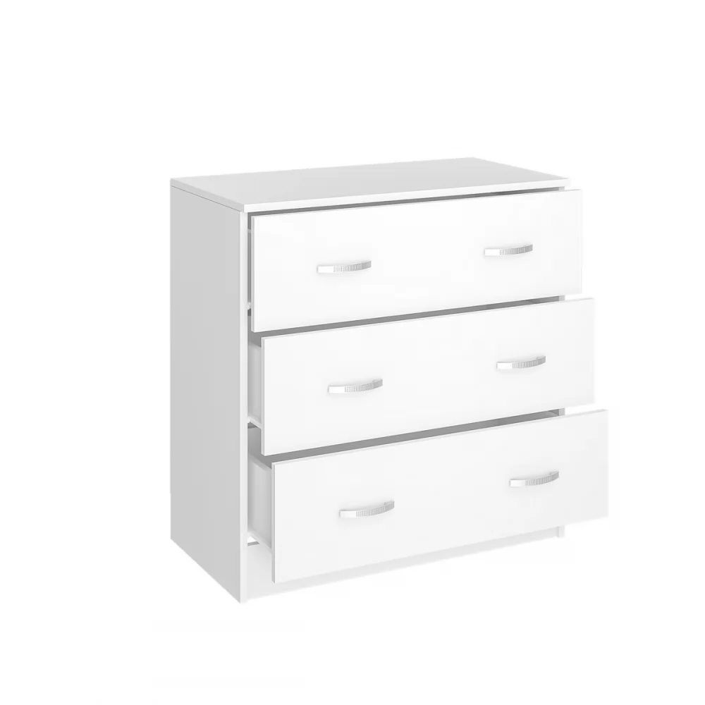 Комод подойдет даже для небольшой спальни, при этом три объемных ящика вместят белье и другие предметы гардероба