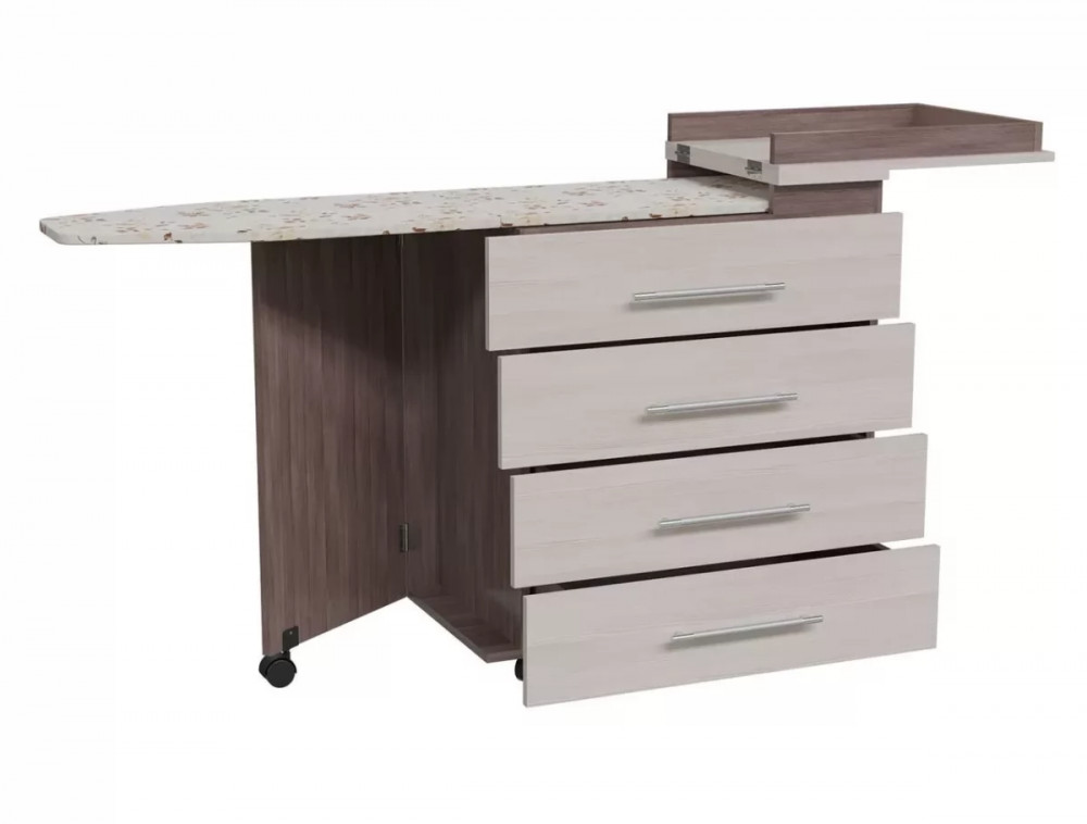 Функциональный и вместительный комод со встроенной гладильной доской! Четыре выдвижных ящика, стильные ручки. Разборная встроенная гладильная доска - настоящая находка для домохозяек!