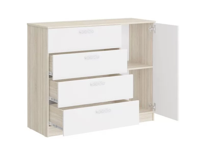 За счет дополнительного отсека с распашной дверкой функциональность комода расширена - можно разместить что-то более крупное.