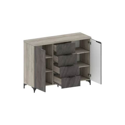 Новые современные цвета: черный ясень - глубокий серый, легкий и одновременно динамичный цвет в сочетании с санторини белым - цвет с древесными линиями, создающими гармоничный контраст. Визуальная легкость, эстетика графики, элегантная окантовка с четкими формами, баланс теплых и холодных оттенков легли в основу дизайна новых модулей.