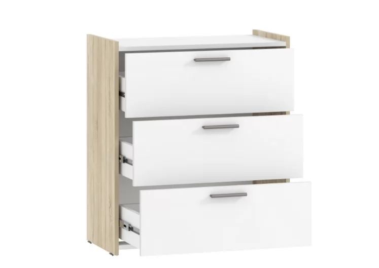 Классический дизайн, спокойные тона и надежность конструкции делают этот предмет мебели по-настоящему универсальным. Комод имеет три выдвижных ящика, которые помогут вам в организации хранения вещей. Ящики выдвигаются плавно и бесшумно и оснащены ручками.