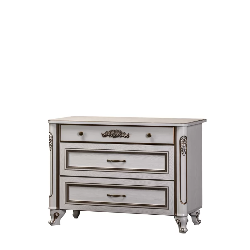 «Скарлетт» являет собой классический и по стилю, и по комплектации набор мебели для спальни. Светлый декор «ясень белый» выглядит нарядно и благородно, а объемные декоративные элементы и патина придают аристократического шика комплекту. При создании мебели использованы классические приемы: рамочные фасады с объемной вставкой, изящные декоративные элементы из ППУ с нанесением патины, ножки модулей замысловатой формы. Спальня «Скарлетт» - образец лучших мебельных традиций, сочетающий в себе красоту, добротность и функциональность.