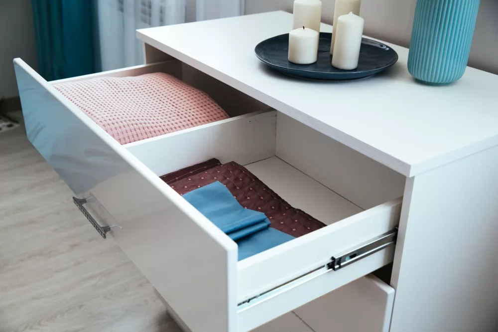 1. Комод имеет 4 выдвижных ящика с разделителями по середине.
