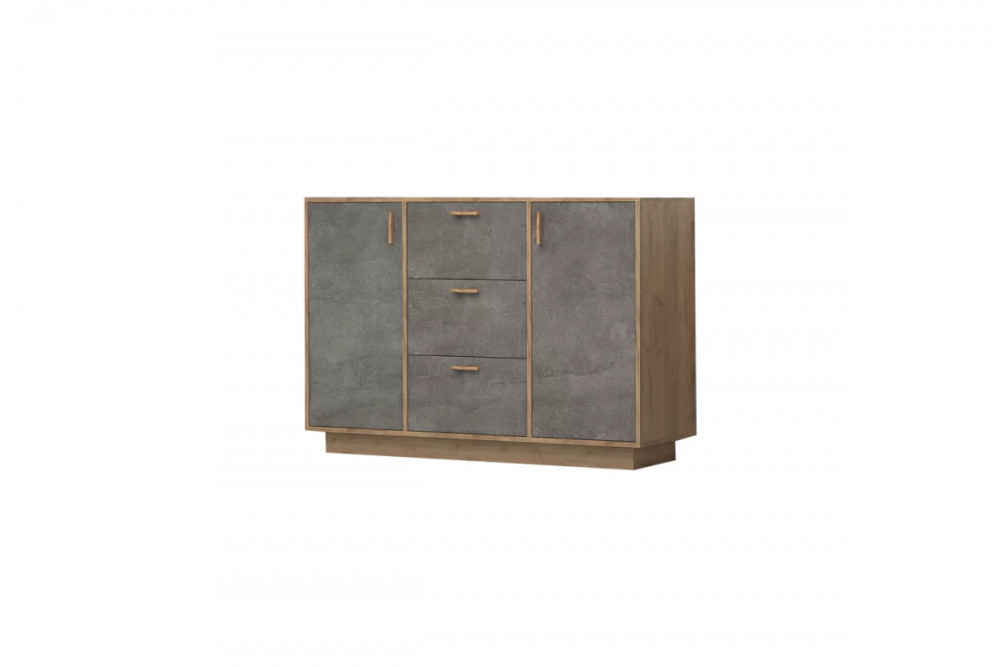 Комод Эго К-3, 3 ящика, дуб крафт золотой/камень темный, цоколь Диал
