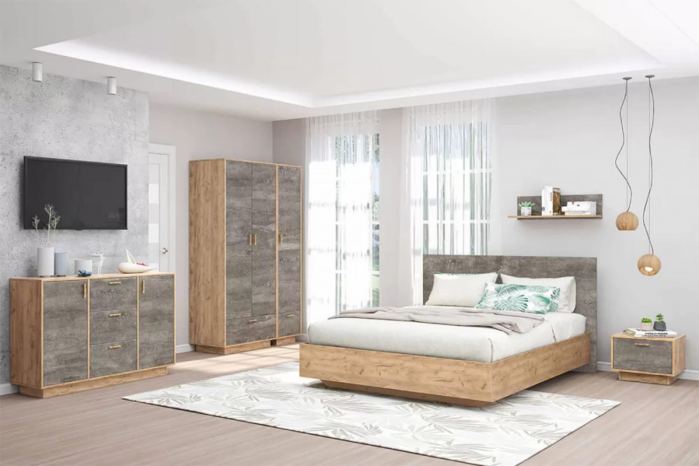 Спальня Эго, набор №КТ-3, дуб крафт золотой/камень темный Диал