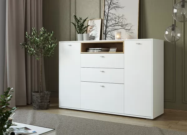 ЛАНС К101 Комод (ш1314*г430*в647мм), ЛДСП БЕЛЫЙ-дуб бунратти/белый (МП)