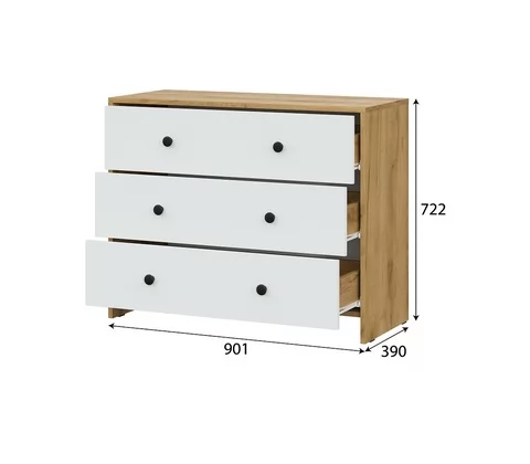 Модульная система "Дольче" Комод 3 ящика Дуб Золотой/Белый