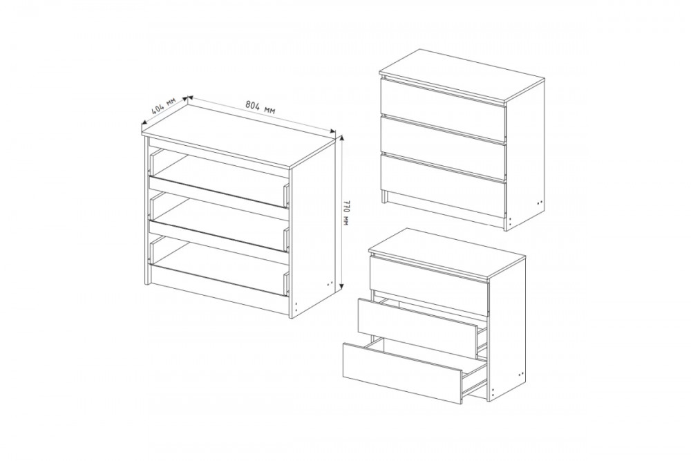 МОРИ МК 800.1 Комод 3ящ. (ш804*г404*в770мм), ЛДСП Белый (МП/3)