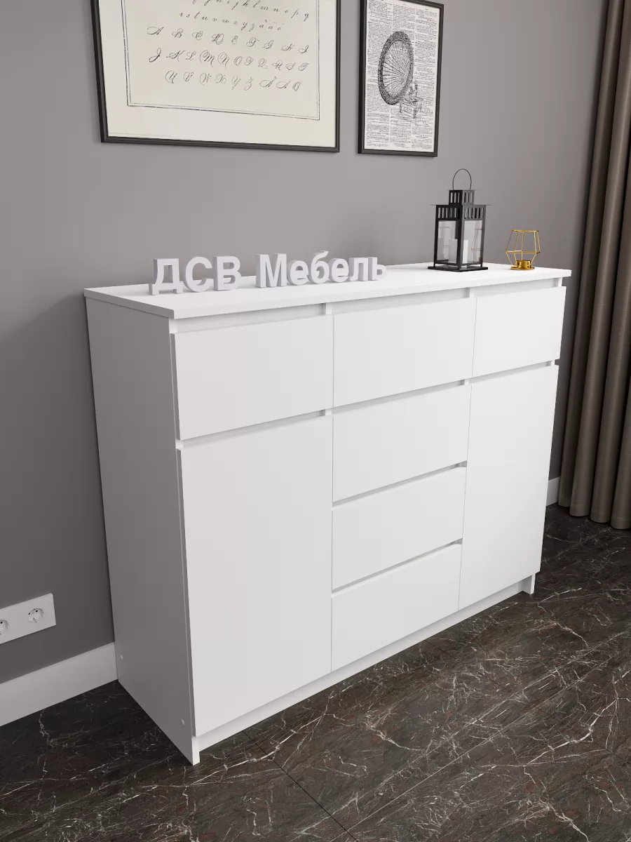 МОРИ МК1200.4 Комод 2дв., 6ящ. (ш1204*г404*в990мм), ЛДСП Белый (МП/3)