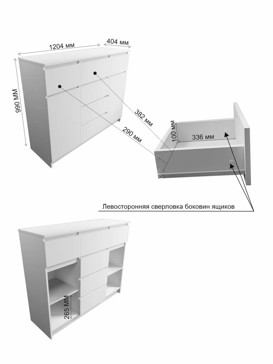 МОРИ МК1200.8 Комод с 8 ящ. (ш1204*г404*в990мм), ЛДСП Белый (МП/3)