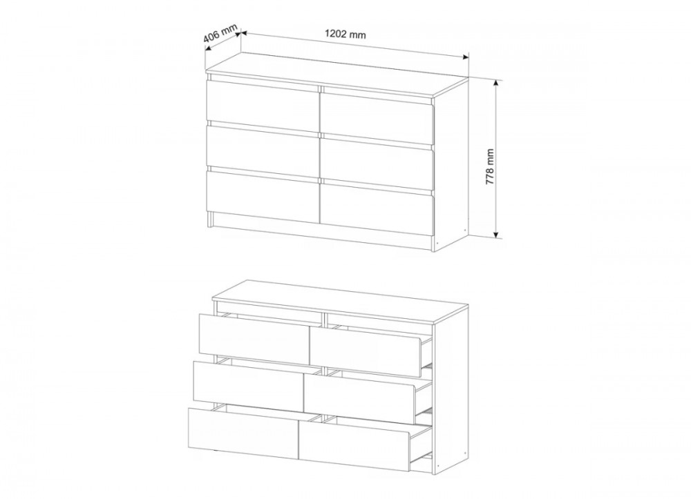 МОРИ МК1200.6 Комод с 6 ящ., (ш1204*г404*в770мм), ЛДСП Белый (МП/3)
