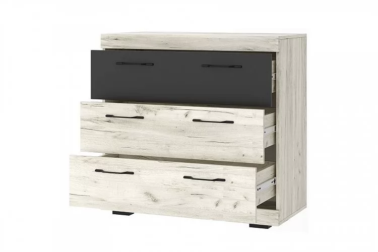 СОНАТА КС-900 Комод 3ящ. (ш900*г450*в870мм), ЛДСП дуб крафт белый-антрацит