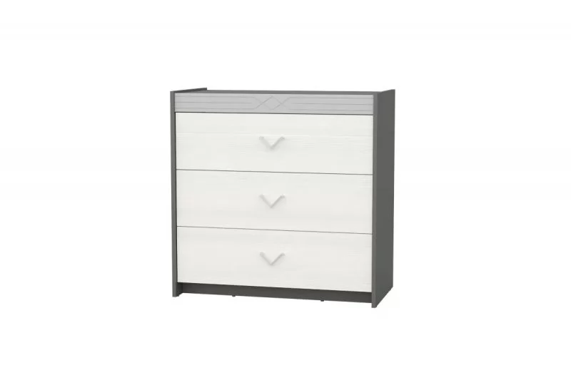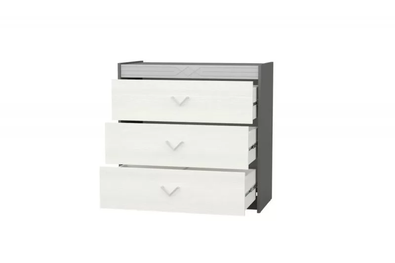 СТЕФАНИ Комод с 3 ящиками (ш900*г460*в900мм), Графит-Серый софт/Рамух белый