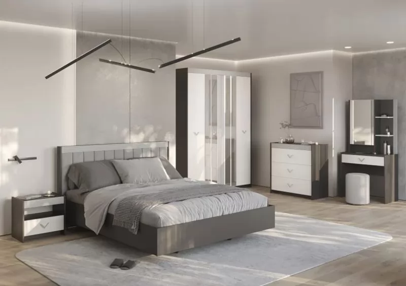 СТЕФАНИ Спальня №1, ЛДСП Графит-МДФ Серый софт/ЛДСП Рамух белый