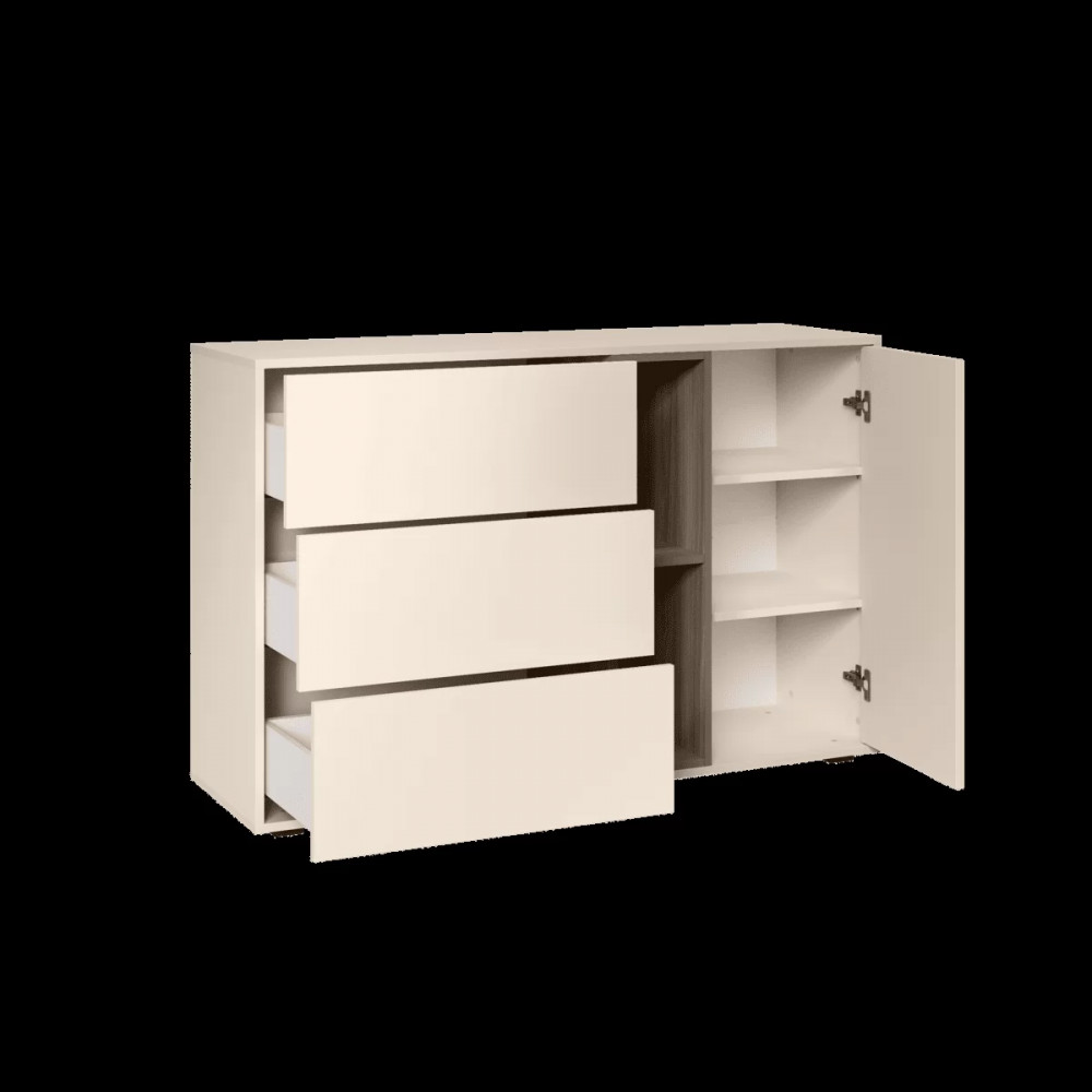 Благодаря нейтральному светлому оттенку и универсальности декора модули можно разместить в спальне, гостиной, прихожей.