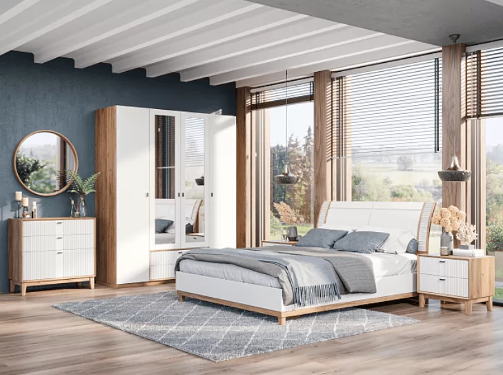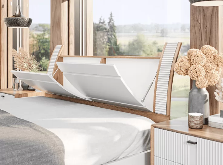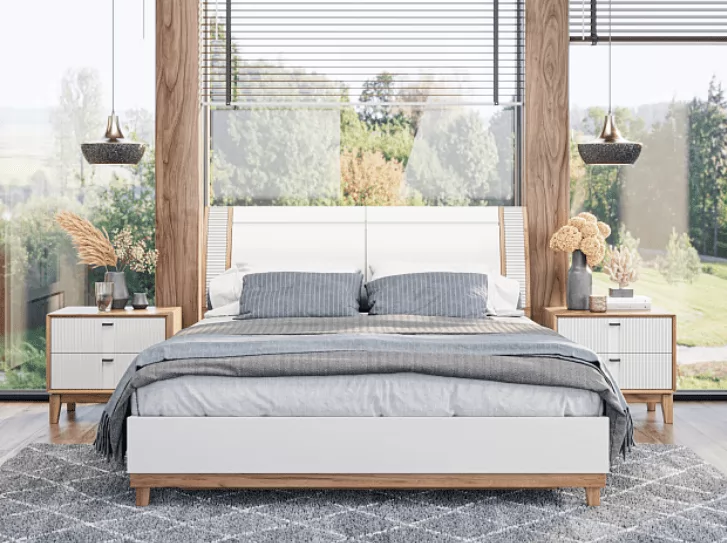 Бари ЛД.698140.000 Кровать двуспальная с кроватным основанием 1600 (Дуб Золотой/Белый)