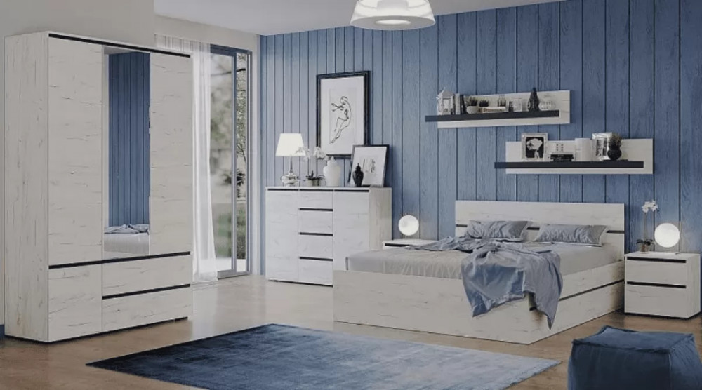 ГРЕТТА Кровать 1600 (с 2 доборами) (с/м 1600*2000мм) (б/матр.), ЛДСП дуб крафт белый-антрацит НАСТИЛ