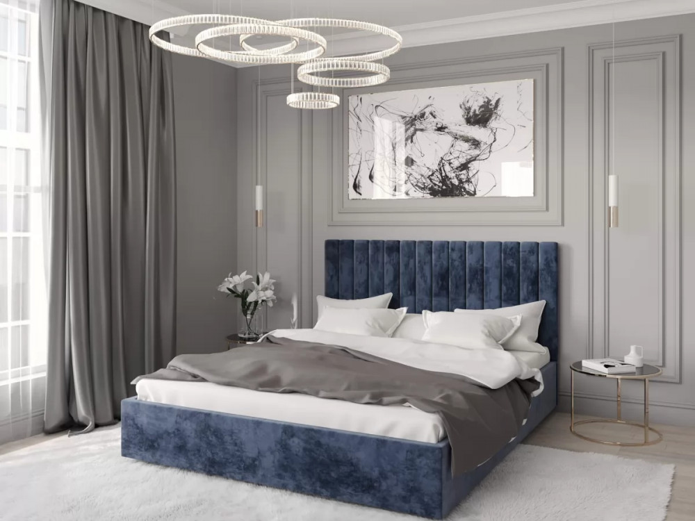 Роскошная, но при этом надежная и стильная кровать Мартин украсит любую спальню. Вертикальные линии изголовья придают строгости, а мягкая обивка из велюра добавит мягкости и уюта. Вместительный ящик для хранения поможет грамотно распределить пространство. Эта модель кровати станет любимицей в доме, где будет приятно отдыхать. Рекомендуемые материалы обивки: мебельный жаккард и велюр.