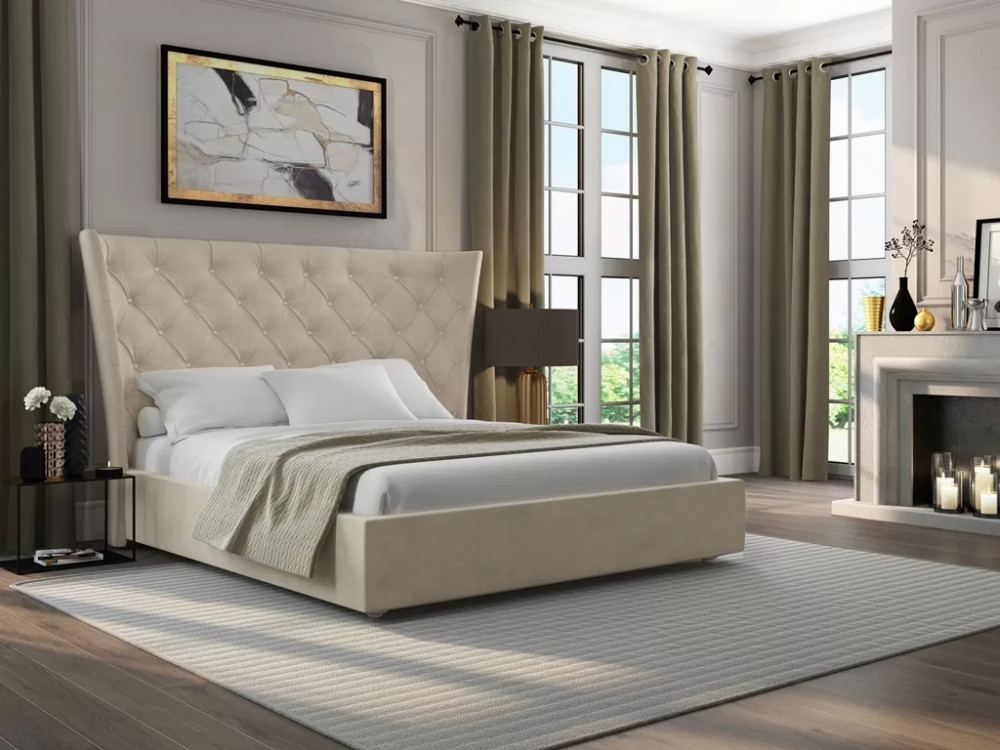Очаровательная кровать Ника с высокой королевской спинкой, украшена каретной стяжкой c пуговицами или со стразами на выбор. Эта модель будет отлично смотреться в спальне с любым интерьером. Закругленное мягкое изголовье создаст атмосферу уюта и защищенности. Приятный материал обивки, надежный каркас, удобное основание. Кровать доступна в комплекте с анатомическим основанием (решеткой) или с прямым подъемным механизмом.