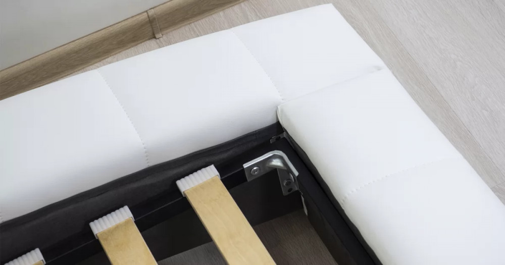 Габариты (Д x Г х В, мм): 2500 x 2200 x 880Спальное место (Д x Ш, мм): 2000 x 1800Высота от верха царги до пола (мм): 335-415Углубление под матрас (мм): 35-115Рекомендованная высота матраса (мм): от 120Допустимый вес матраса для кровати: без ограниченийМаксимально допустимая нагрузка на 1 спальное место: 100 кгДля этой модели не предусмотрен механизм подъема основания и кроватного днаПримечаниеЗадняя стенка изголовья выполнена в тех. ткани (спанбонд).Бельевой ящик: нетСъемный чехол: нетМатериалыКаркас: ДСП, ДВПМатериал лат: гнутоклееная фанераДекор: Каркас кровати декорирован стежкой| Цвет | Белый |