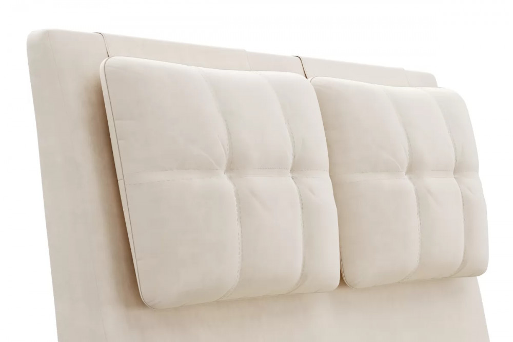 Кровати выполнены в нейтральных и в ярких тканях велюр, что позволяет подобрать подходящий вариант почти под любой интерьер. В качестве декора применяются декоративные подушки на изголовье.