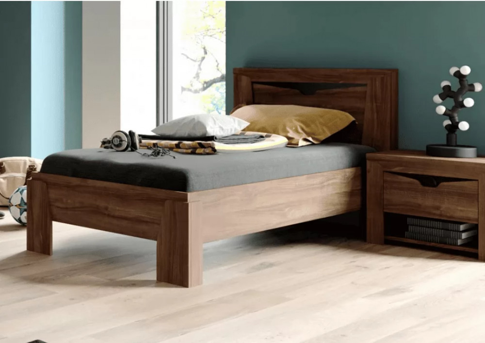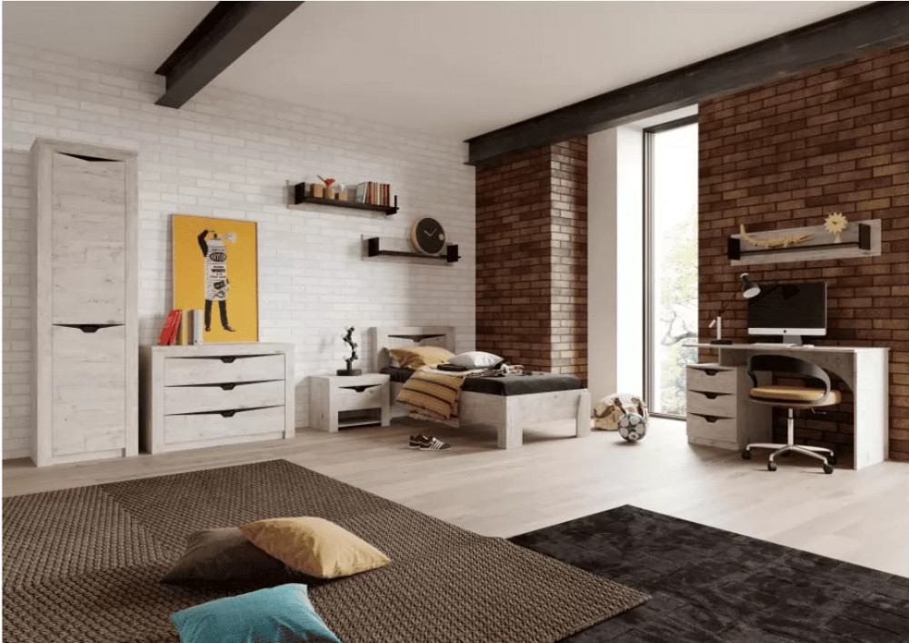 Спальный гарнитур «Фьюжн» стандартный без шкафа Дуб Делано, Белый глянец