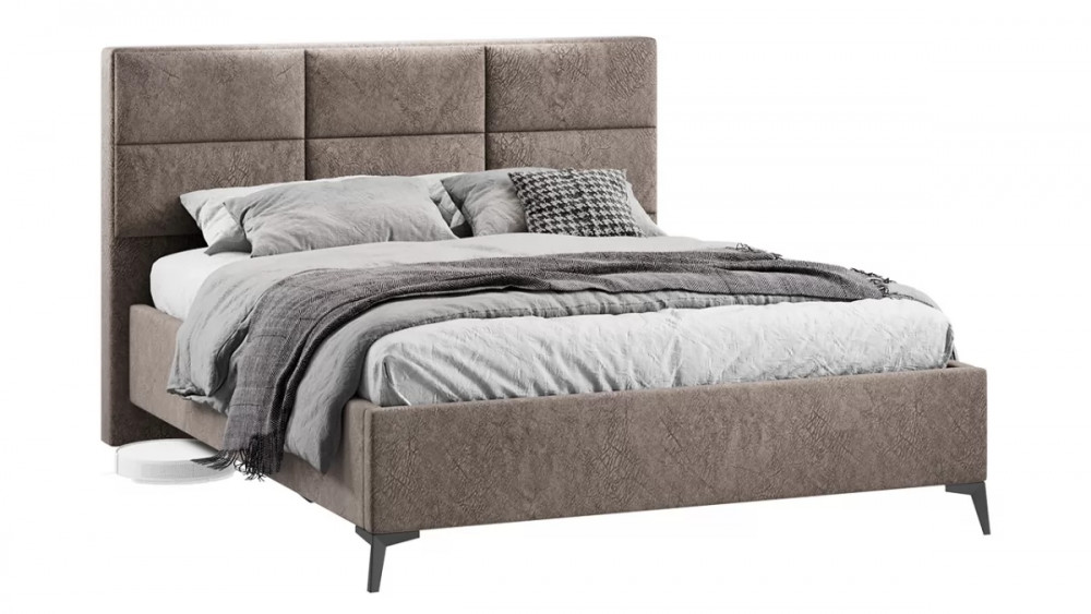 Кровать без ПМ «Делана» (без подъемного механизма) Микровелюр Wellmart Latte